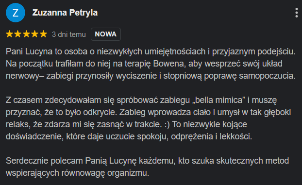 Technika Bowena jest moją prawdziwą pasją. Pracując na powięzi, pomagam uwolnić ciało od bólu, stwarzając organizmowi najlepsze warunki do osiągnięcia równowagi.